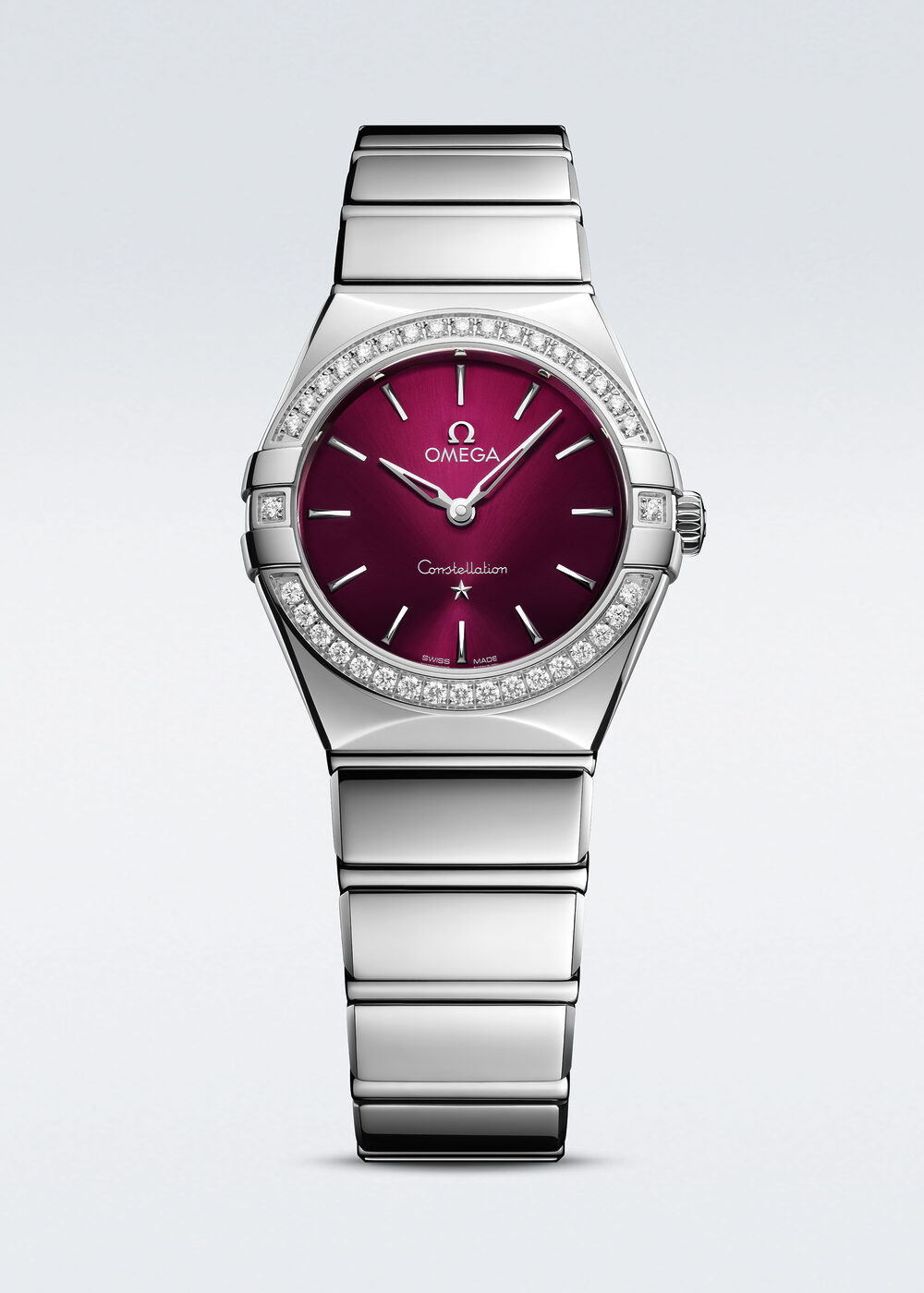 오메가의 컬렉션 중에서도 우아한 디자인과 탁월한 예술성으로 많은 이들의 사랑을 받은 컨스텔레이션은 1952년에 탄생한 이후부터 지금까지 스위스 워치메이킹의 아이콘 위치를 굳건하게 지키고 있다. 특히 케이스백에 새긴 제네바 천문대의 8-스타 메달리온은 컨스텔레이션의 클래식한 품격을 드러내는 상징이다. 새 모델은 전면 폴리싱 처리한 정교한 외형과 시그니처 클러, 정밀한 베벨링 디테일을 더해 브랜드의 정체성과 우아한 디자인 미학을 고스란히 보여준다. 전통적인 상징을 오롯이 계승한 오메가의 컨스텔레이션 모델들은 디자인과 기술적 측면에서 현대적 감각을 더해 여성스러운 감성은 물론, 정교하고 세련된 마감 기법으로 오메가 워치의 탁월한 정확성과 독보적인 디자인을 증명하고 있다.