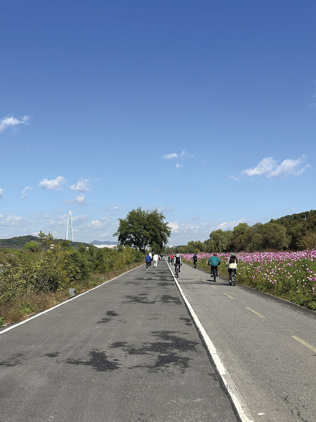 이 계절에 제격인 코스를 고르자면, 자양역에서 성수대교를 향해 달리는 길이다. 한강을 따라 달리면 정면에 남산타워가 서서히 드러나고, 성수대교를 지나 반환점을 도는 순간 낮에는 햇살이, 밤에는 다리 불빛이 강 위를 물들이며 특별한 풍경을 선사한다. 되돌아올 때는 곧게 뻗은 롯데타워가 시야를 가득 채우는데, 남산타워와 롯데타워를 스치며 달리다 보면 마치 서울을 두 팔로 품는 듯한 벅찬 감정이 든다. 그렇기에 이 코스는 단순한 러닝이 아니라, 도시와 내가 이어지는 순간이 된다.