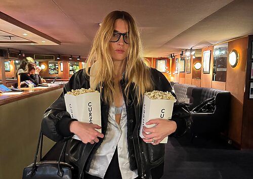 1. 에피타프가 제안한 여러 장의 의상 시안을 보며 질문을 던지는 가인.2. 가인이 가장 마음에 들어한 프린트 드레스를 입은 채, 에피타프의 글래디에이터 슈즈를 신고 등장했다. 3. 에피타프 디자인실의 행어에는 그녀를 위해 준비한 다채로운 프린트의 미니 드레스들이 가득 걸려 있었다. 4. 에피타프의 크리에이티브 디렉터인 정구호와 프린트 미니 드레스를입은 채 거울 앞에 선 가인.