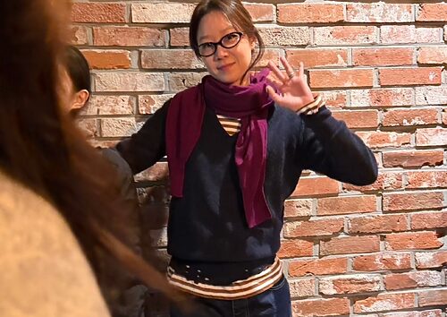 정청솔이 입은 크림색 데님 재킷, 줄무늬 로고 양말과 스니커즈는 모두 Isabel Marant 제품. 김봉우가 입은 페이즐리 프린트 후디 집업 재킷, 붉은색 데님 재킷, 줄무늬 로고 양말과 스니커즈는 모두 Isabel Marant 제품.