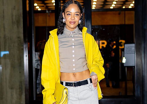 마이크로 미니스커트와 노출 수위가 비슷할까? 다리 라인이 그대로 드러나는 시스루 드레스로 아슬아슬함을 뽐낸 파피와 타냐 버. 포멀한 재킷과 루즈한 니트로 상체를 덮어 노출 수위(?)를 조절한 것에 주목.