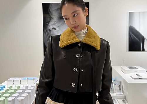 케이프 디테일의 니트 드레스는 JW Anderson 제품.