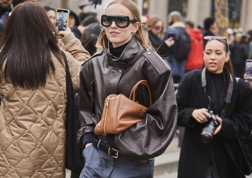블랙 톱과 오렌지 스커트는 Tomford 제품.