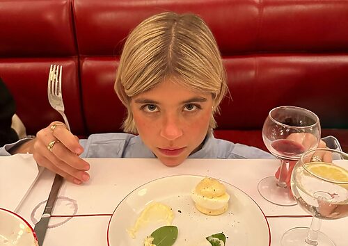 엠브로이더리 재킷, 레이스 장식 쇼츠, 랩스커트, 피시넷 타이츠, 조형적인 굽의 메리제인 슈즈는 모두 가격 미정으로 디올 제품.