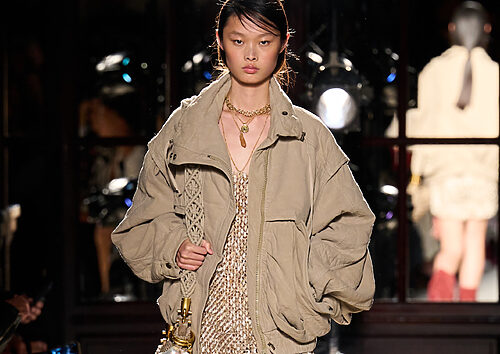쇼장으로 향하기 직전. 루이 비통 앰배서더인 혜인이 선택한 옷은 2025 크루즈 컬렉션의 21번 룩. 오버올 팬츠, 도트 패턴과 러플 장식 스카프, 앵클부츠는 루이 비통 제품.