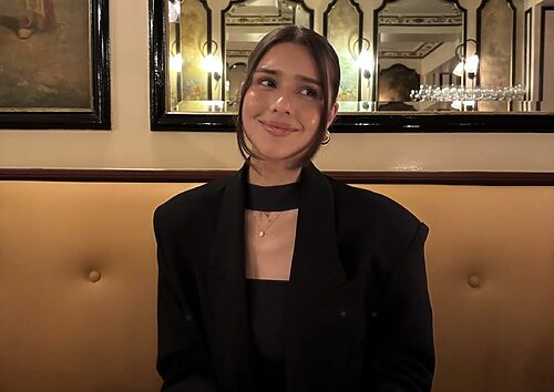 초록색 바탕에 핑크색 히비스커스 문양이 큼직하게 새겨진 포근한 카디건을 입은 미셸. 머리끝부터 발끝까지 어디 하나 평범한 구석이 없는 그녀의 안목은 언제나 상상 그 이상입니다. 컬러풀한 카디건에 시퀸 장식이 가득한 스커트를 더해 반전 매력을 뽐낸 것만 봐도 알 수 있죠.