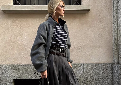 또 하루는 생 로랑의 가죽 바머 재킷을 입고 등장했습니다. 마찬가지로 바머 재킷 자체는 여유로운 실루엣이지만 하의는 펜슬 스커트와 부츠로 날렵한 라인을 완성했죠. 벨라의 스타일링 킥이라면 바로 액세서리! 속이 훤히 비치는 고글 선글라스에 빈티지 펜디 백을 매치해 세련된 빈티지룩을 보여줬습니다.