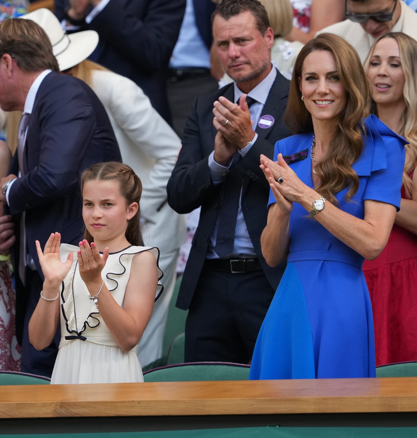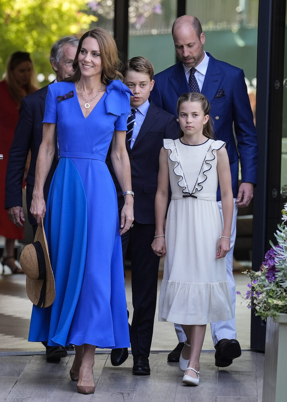 최근 유독 눈에 띄는 엄마 케이트 왕세자비와 딸, 샬럿 공주의 모녀 룩. 이번 윔블던 대회에서는 새파란 블루 드레스와 화이트 드레스로 여름의 청량함을 선보였습니다. 어깨에 리본 장식이 달린 롱 드레스를 입은 케이트 왕세자비와 블랙 트리밍의 러플 장식이 사랑스러운 샬럿 공주, 그리고 파란 블레이저를 입은 윌리엄 왕세자와 네이비 수트를 입은 조지 왕자까지, 개구장이 막내 아들 루이스를 제외하고 온 가족이 출동했죠.