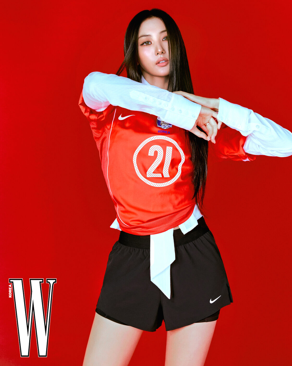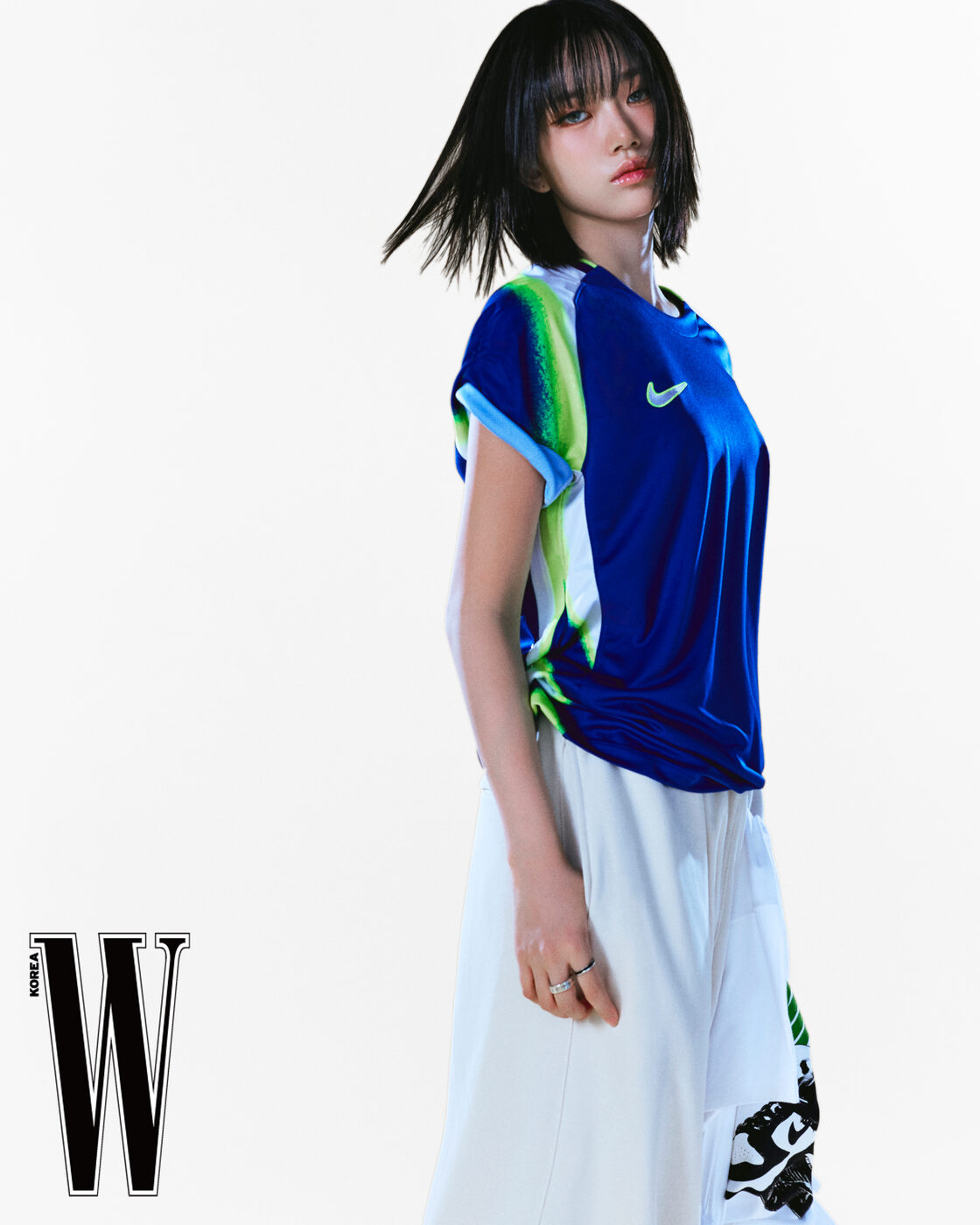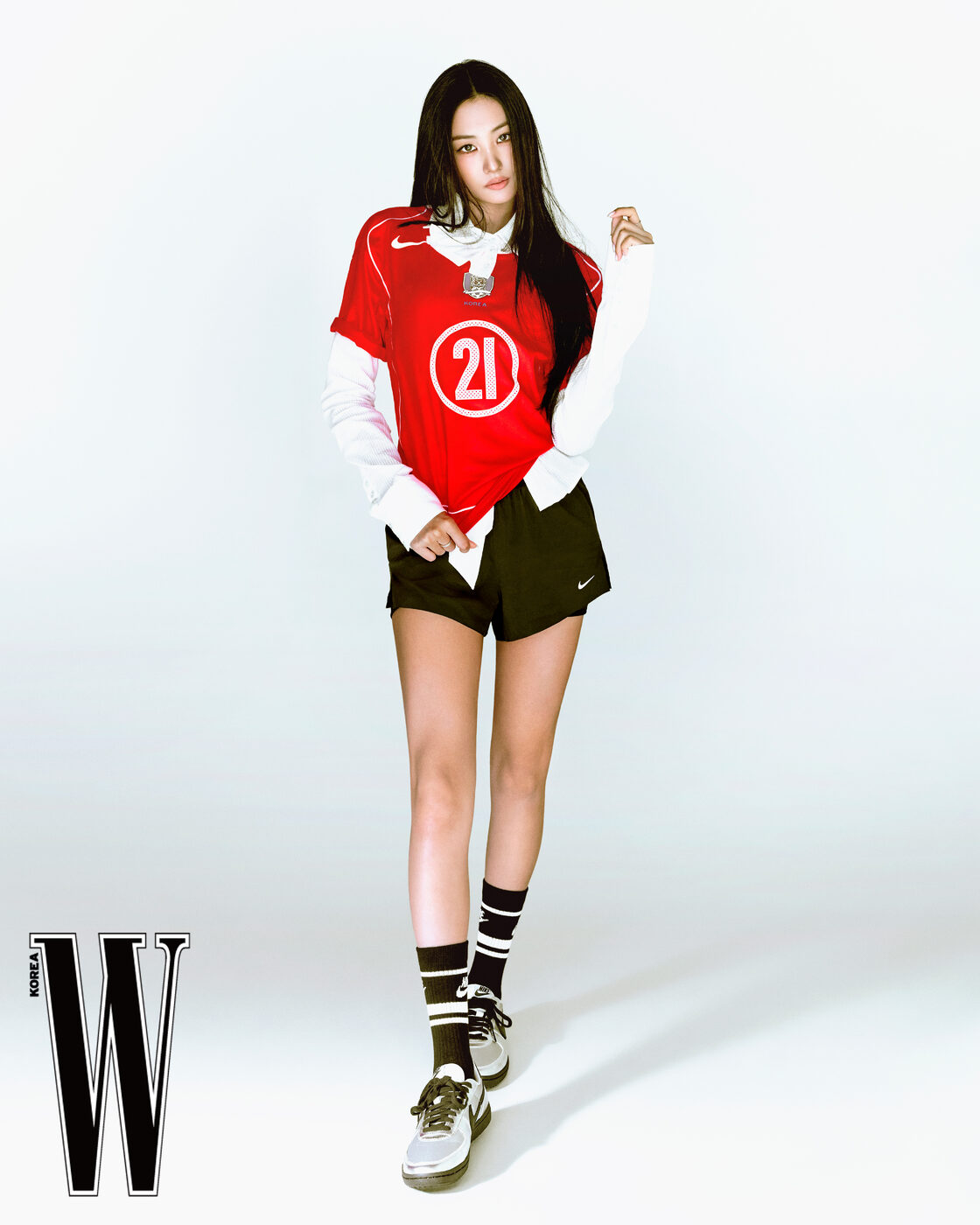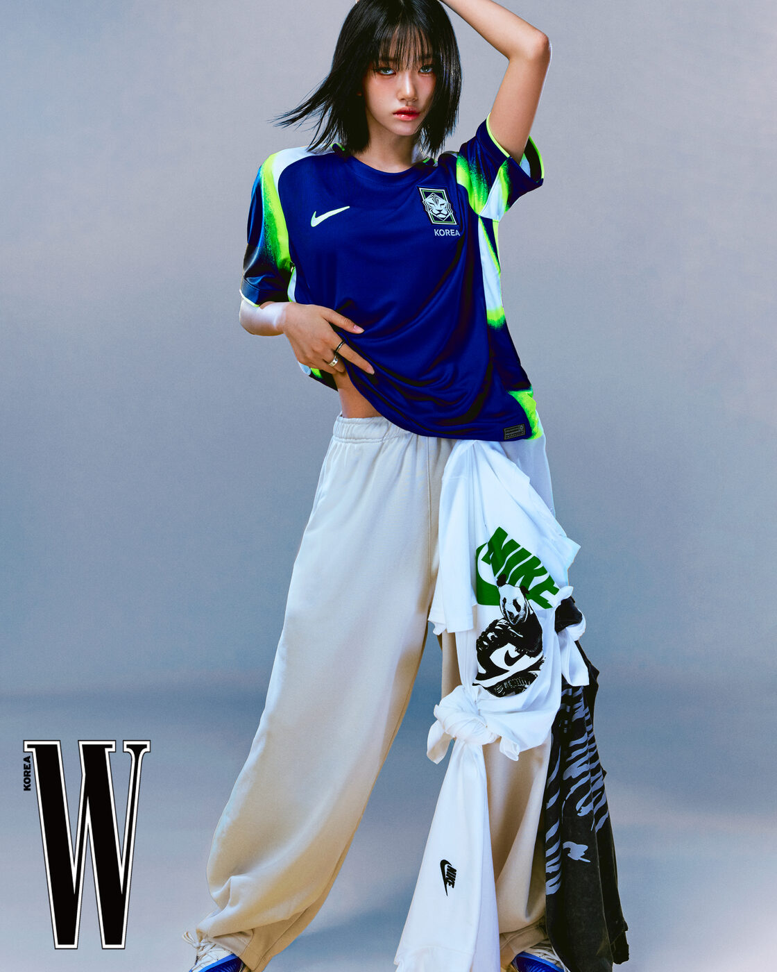 왼쪽 위부터 | 가원이 입은 코리아 2004 리이슈 저지와 스위프트 드라이 핏 미드라이즈 투인원 쇼츠, 필드 제너럴 스니커즈와 에센셜 크루 삭스, 수인이 입은 2025 여자 축구 국가대표팀 어웨이 유니폼, 클럽 플리스 프렌치 테리 팬츠, 나이키 팬텀 6 로우 엘리트 축구화와 에브리데이 플러스 삭스, 나린이 입은 플리스 트랙 재킷, 스우시 스포츠 브라, 레이어드한 프로 365 쇼츠, 프로 드라이핏 피트니트 쇼츠, 클럽 벌룬팬츠, 토탈 90 스니커즈, 엘라가 입은 브라질 2004 리이슈 저지, 가토 슈즈와 에브리데이 플러스 크루 삭스, 안나가 입은 토탈 90 드라이 핏 축구 저지, 가토 슈즈는 모두 Nike 제품.스포츠웨어 프리미엄 에센셜 탱크톱은 Nike 제품.