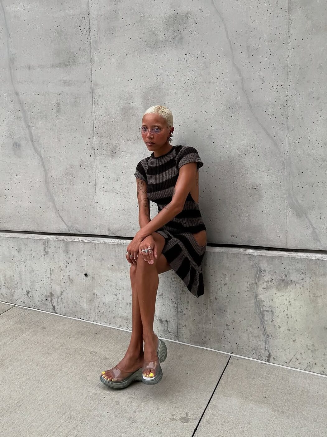 낮은 키튼 힐부터 높은 플랫폼 힐까지 클리어 슈즈의 매력은 여기저기 다채롭게 드러납니다. 와이 프로젝트와 멜리사가 협업해 출시한 앞코 뾰족한 젤리 슈즈는 글래머러스한 무드를, 올블랙 차림에 클리어 슈즈 하나로 포인트를 준 테스 로즈 볼드윈의 룩은 모던하면서도 강한 인상을 남기죠. 반면 미래적인 디자인의 플랫폼 클리어 뮬을 신은 밀란 휘튼의 모습은 시선을 압도하는 힘을 가졌네요.