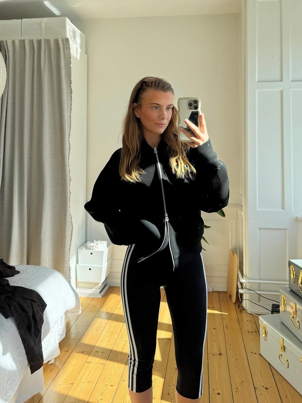 재킷과 함께 올블랙으로 연출하면 의외로 포멀한 분위기도 낼 수 있어요. 너무 운동복 같아 보이는 게 걱정이라면, 헤어 스타일로 밸런스를 잡아보세요. 가르마를 바꾸거나 머리를 뒤로 넘겨 슬릭하게 정리하는 것만으로도 분위기가 확 달라지거든요. 스카프 하나로 스타일에 포인트를 더하는 것도 좋은 방법이에요.