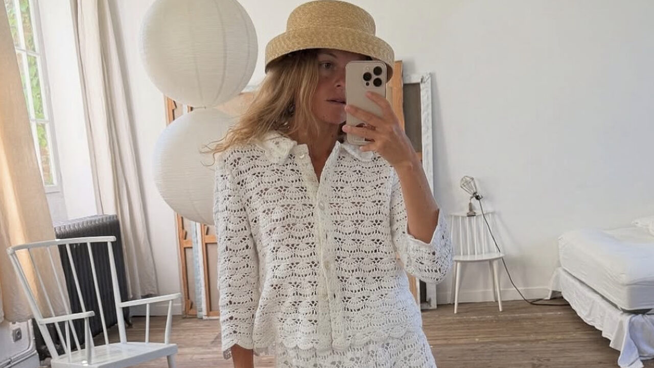 어딘지 모르게 올드하고 빈티지 해 보이는 이 크로셰 아이템들을 입지 않고선 여름을 오롯이 즐겼다고 하지 마시길. 그만큼 다양하고 세련된 룩들이 넘쳐납니다. 7부 소매의 칼라가 달린 카디건과 미니 스커트로 완성한 코지한 셋업룩이 시선을 사로잡습니다. 둥그런 형태의 스트로 햇과 미니멀한 블랙 플랫으로 시크한 감성을 더했어요. (@alicepilate)
