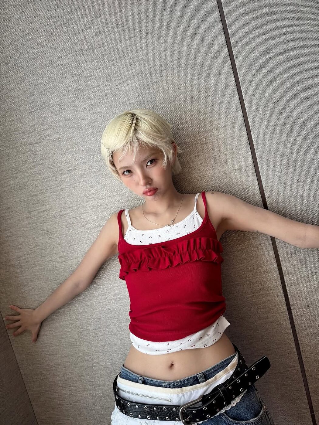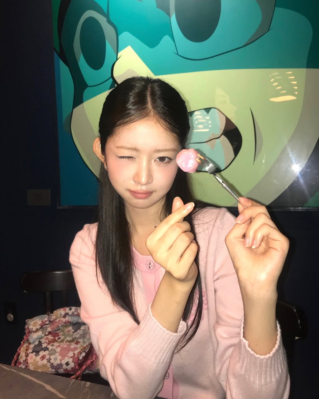 채도 높은 블러셔와 아이섀도우를 활용해 생기 넘치는 메이크업을 연출한 아일릿 역시 밝은 브로우를 선택했습니다. 눈썹을 연하게 연출한 덕에 컬러 메이크업의 색감이 선명하게 살아나면서 아이 메이크업과 블러셔가 더욱 강조돼 보이죠.