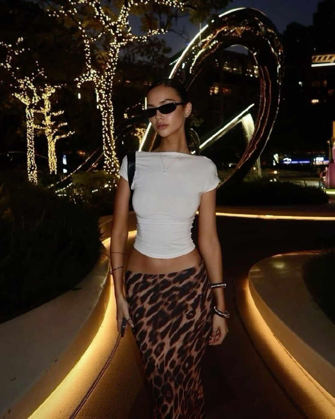 실루엣이 드러나는 타이트한 맥시스커트는 노출 없이도 ‘으른미’ 넘치는 섹시한 스타일링이 완성되죠. 모델 다샤 일류시취츠는 타이트한 보트넥 톱과 로라이즈로 내려 입은 레오퍼드 맥시스커트로 팬시한 디너 약속이나 파티에 어울리는 글램한 아웃핏을 연출했는데요. 볼드한 뱅글 레이어드로 화려함을 더해 완벽한 꾸꾸꾸 스타일링까지 특별한 날에 참고하기 좋은 ootd를 보여줬습니다.