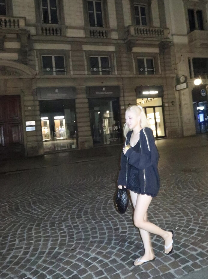 로제의 플립플랍 룩은 여전히 이 신발이 왜 손절불가인지 보여줍니다. 크롭 티셔츠와 미니 스커트의 조합에 화이트 플립플랍을 매치해 시원하고 가벼운 무드 속에서도 확실한 존재감을 드러냈죠. 실내에서는 호텔 침대에 걸터앉아 여유로운 분위기를, 거리에서는 선글라스와 함께 도회적인 쿨함을 더해 주며 장소에 구애받지 않는 스타일을 완성했네요. 남은 여름에도 플립플랍을 단순한 편한 신발이 아니라 패션 아이템으로 남길 수 있는 이유가 여기에 있습니다.