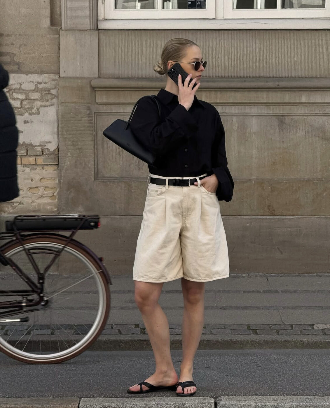출근룩에도 플립플랍이 괜찮을까 염려된다면 위의 룩들을 참고해보세요. 블랙 셔츠와 아이보리 버뮤다 팬츠의 미니멀한 조합에 블랙 플립플랍을 매치해 단정하면서도 힘 뺀 멋을 완성한 스타일. 슬릭한 헤어와 블랙 백으로 깔끔함을 극대화했죠. 스트라이프 셔츠와 화이트 데님 쇼츠에 화이트 플립플랍을 더해 경쾌하고 세련된 무드를 연출해도 좋습니다. 골드 액세서리와 볼드한 뱅글, 그리고 구조적인 화이트 백이 스타일에 여름 특유의 산뜻함을 더해주네요. 발끝까지 오피스 프렌들리한 무드를 유지하는 건 컬러와 실루엣의 조율이라는 걸 기억하세요!