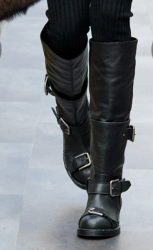버클이 대세입니다. 허리 벨트도 그렇고, 종아리를 감싸는 부츠도 그렇습니다. 커다란 메탈 버클 하나 정도는 달려야 해요. 미우미우는 국적불명 할머니 스타일의 오묘한 컬러와 패턴의 조화가 돋보이는 빈티지 스타일링에 무릎 아래까지 오는 롱 부츠를 신었어요. 타이트한 레더 부츠의 위쪽엔 커다란 버클을 달아 시크한 레트로 무드를 완성했죠. 돌체 앤 가바나 또한 여러 개의 벨트가 장식된 해적 부츠 스타일을 선보이며 러프하고 반항적인 스타일링을 선보였습니다. 여성스럽고 단정한 룩에 버클 벨트 부츠를 매치한다면 매력적인 반전미를 보여줄 수 있겠어요.