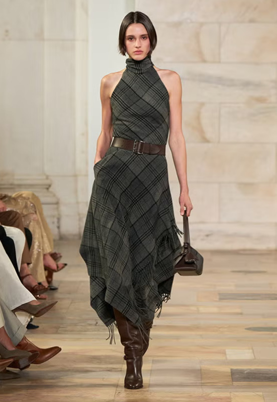 가장 기본이자 타임리스 아이템, 바로 브라운 컬러의 롱 부츠에요. 그 어떤 옷차림에 신어도 두루두루 잘 어울림은 물론 트렌드에 구애받지 않고 오래도록 신을 수 있는 아이템이죠. 보헤미안 스피릿 충만한 랄프 로렌처럼 타탄 체크 패턴의 롱 드레스에 신거나 펜디처럼 머메이드 라인의 미디 스커트에 매치해도 좋습니다. 중요한 건 미니 보다는 부츠를 살짝 덮을 정도의 길이가 스타일리시해 보인다는 거에요.