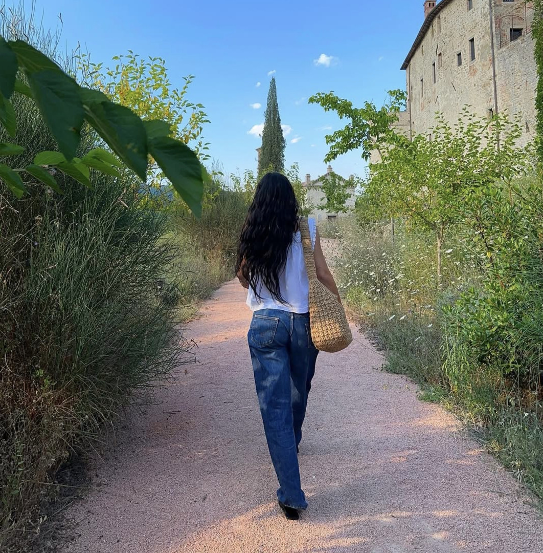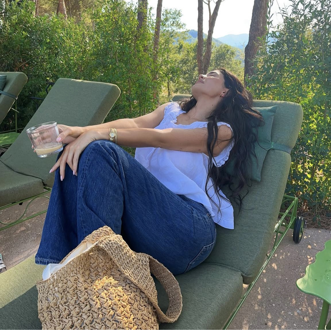 이런 편안하고 코지한 무드의 카일리는 일년에 몇 번 가족, 지인들과의 휴가에서 보여주곤 한답니다. 코티지 풍의 데님 룩에 스트로 백을 든 청순한 퀸의 모습. 강렬하고 카리스마 넘치는 룩 외에 이런 내추럴한 청바지 스타일링을 더 자주 보고 싶네요.
