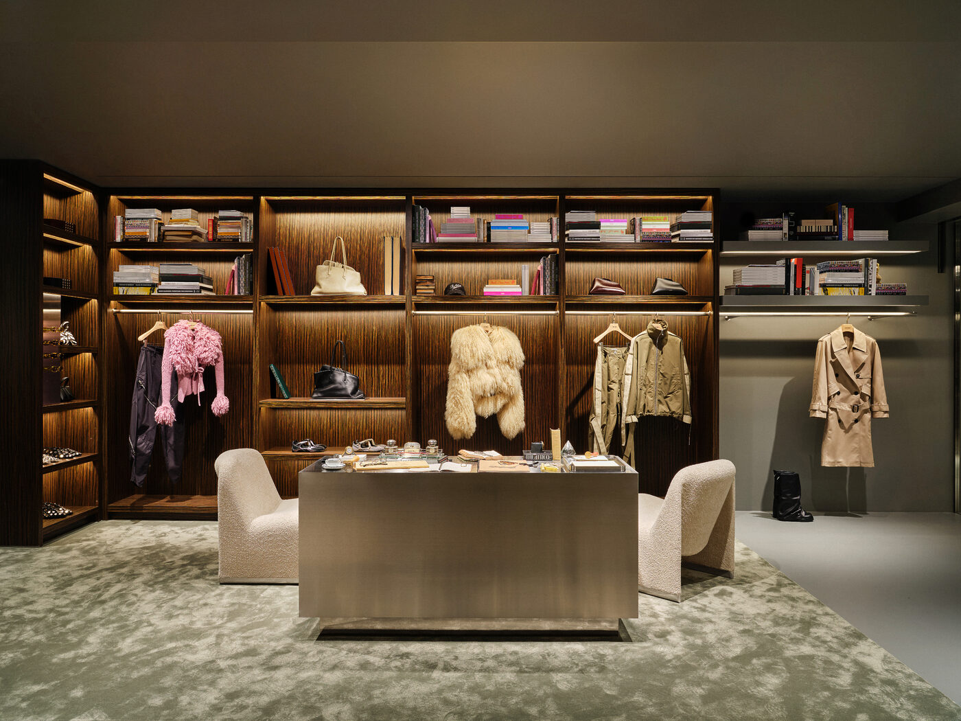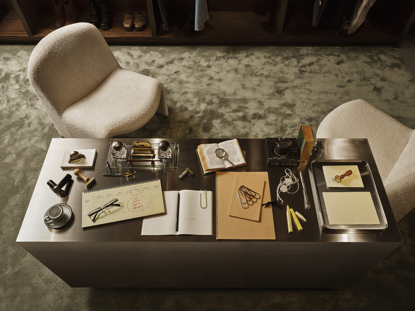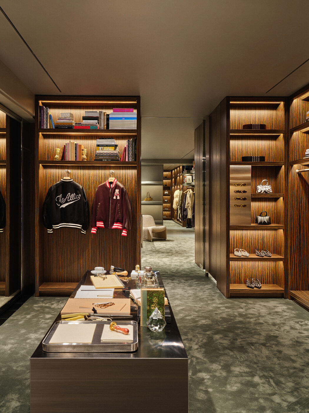 이탈리아어로 ‘펜트하우스’를 뜻하는 디아티코(THE ATTICO)는 질다 암브로시오(Gilda Ambrosio)와 조르지아 토르디니(Giorgia Tordini)가 2016년 설립한 밀라노 기반의 이탈리아 하이엔드 브랜드로 이름처럼 누구나 환영받는 웅장한 비전의 세계를 그려낸다. 특히 개성을 중시하고 두려움 없이 당당한 삶을 사는 여성을 표현하는 컬렉션이 특징이다. 이번에 오픈한 디아티코 갤러리아 EAST 매장은 ‘도서관(Library)’을 콘셉트로 따뜻한 우드 톤과 이탈리아 디자인 서적이 어우러져 감각적인 서재에 초대된 듯한 느낌을 전한다. 미드센추리 밀라노 스타일에서 영감을 받은 우드 패널과 책장은 고요하고 기품 있는 무드를 더하고, 회색 콘크리트 마감은 거칠지만 세련된 질감을 완성한다. 이와 더불어 대표 아이템인 브랜드 아이코닉 백 ‘라 파세지아타(La Passeggiata)’, ‘로빈(Robin)’ 부츠, 새롭게 선보이는 발레리나 플랫 ‘Floor 01’ 슈즈 등이 눈길을 사로잡는다.
