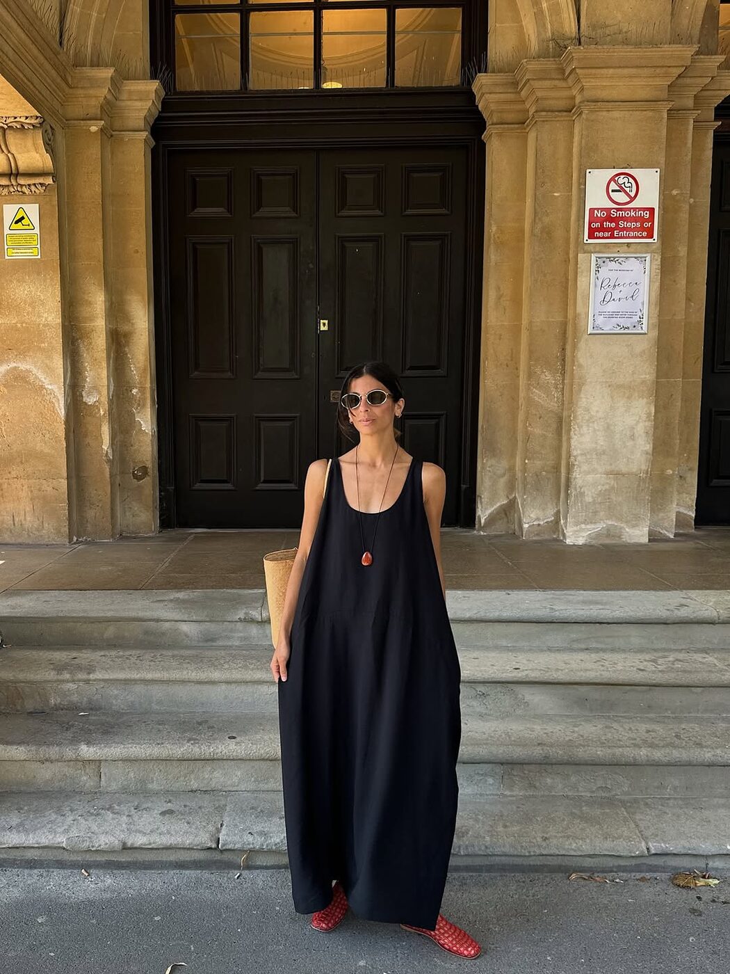 기다란 슬리브리스 드레스는 한 끗 차이만으로도 전혀 다른 스타일이 탄생한답니다. 넉넉한 실루엣이라면 여유롭고 차분한 무드가 풍기는 반면 보디라인이 드러나는 실루엣에 화사한 컬러 또는 패턴을 가미한 드레스는 로맨틱한 분위기를 선사하죠. 드레스와 상반되는 짤막한 길이의 아우터를 매치해 또 한 번의 색다른 변주를 시도하는 것도 재미있겠네요.