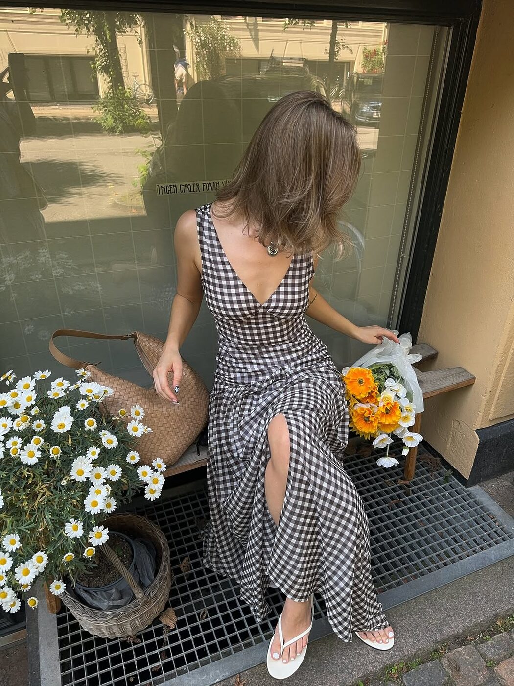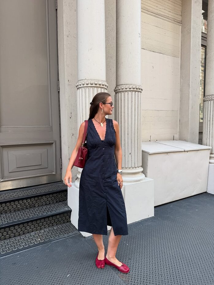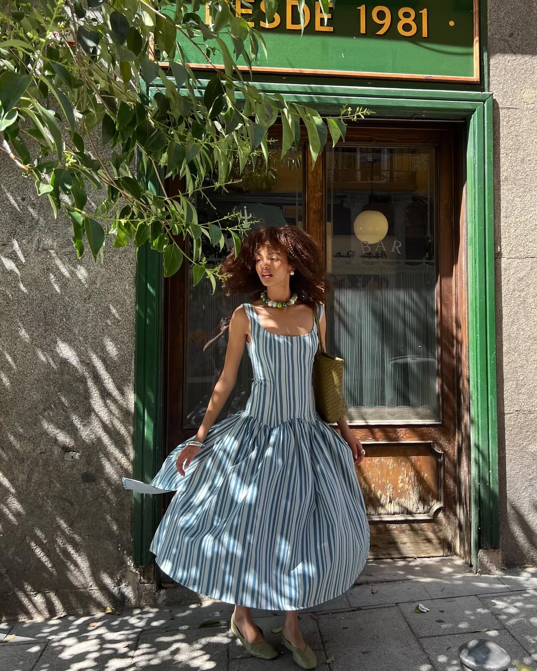 어중간한 길이가 매력인 미디 드레스. 소매가 달린 미디 드레스라면 특유의 단정한 분위기가 더욱 살아날 테지만 슬리브리스 형태의 미디 드레스는 여성스러운 동시에 어딘가 멋지고 쿨해 보이는 룩을 완성할 수 있어요. 대비를 이루는 두 가지 무드 중 더 강조하고 싶은 포인트를 드레스의 패턴이나 장식, 디테일 등을 활용해 마음껏 구현하세요.