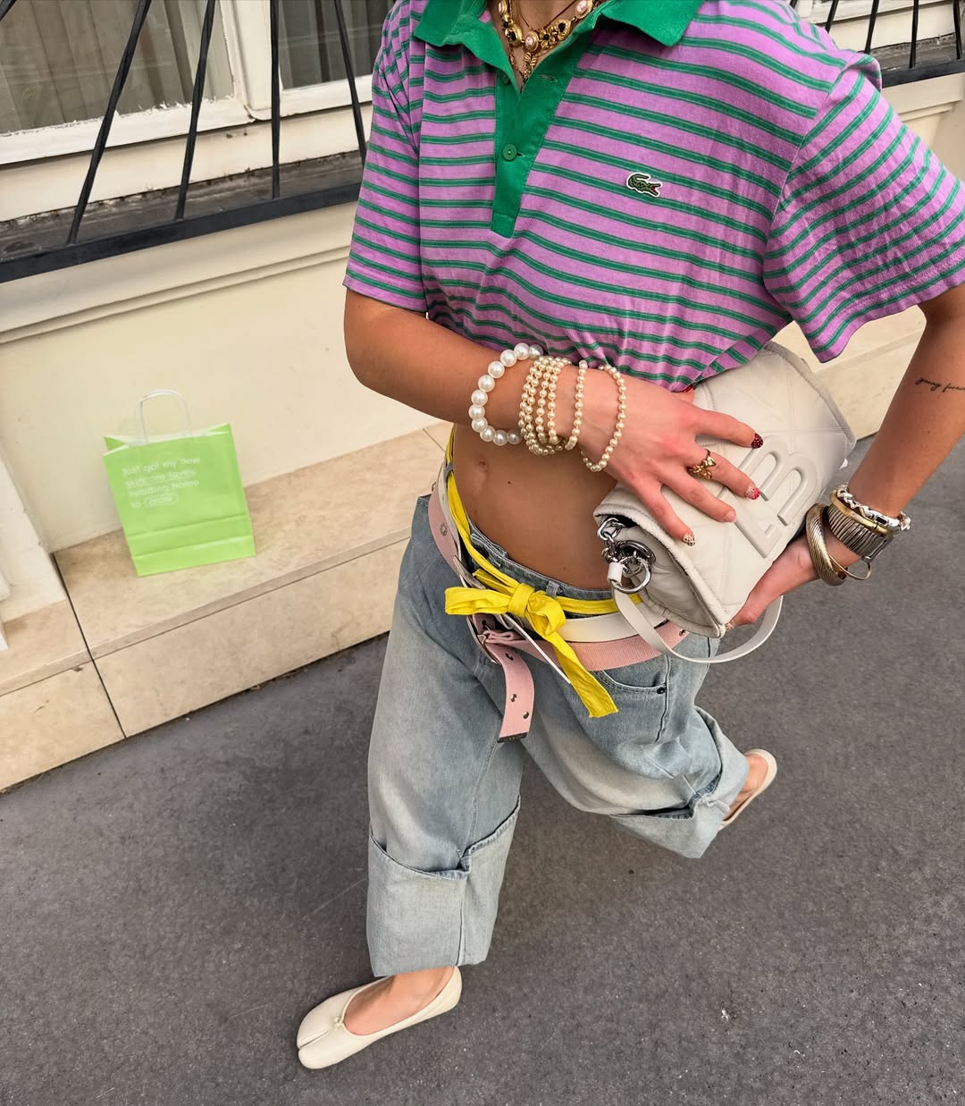 튜바처럼 서로 다른 컬러의 끈이 달린 톱을 허리에 얹거나 리리처럼 셔츠 위에 시스루 원피스를 스커트처럼 걸친 듯 연출한 룩을 보세요. 무심하지만 분명히 드러낸 끈이 파격적이라 되려 스타일리시해 보이죠. 작은 끈 레이어드 하나가 가장 큰 반전을 보여주었습니다.
