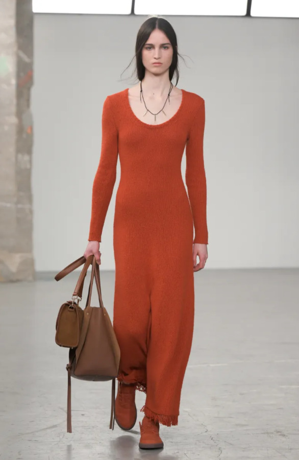 올드 머니 스타일의 미니멀리즘을 지향한다면 이 심플하고도 개성 넘치는 니트 드레스가 제격입니다. 라운드 네크리스의 심플한 디자인이 돋보이는 롱 니트 드레스는 햄 라인에 프린지가 더해져 일탈을 선사하죠. 디자인은 단순하지만 컬러는 강렬합니다. 올가을 메인 컬러로 떠오른 오렌지 니트 드레스 하나면 특별한 무드를 연출하기 충분해요.