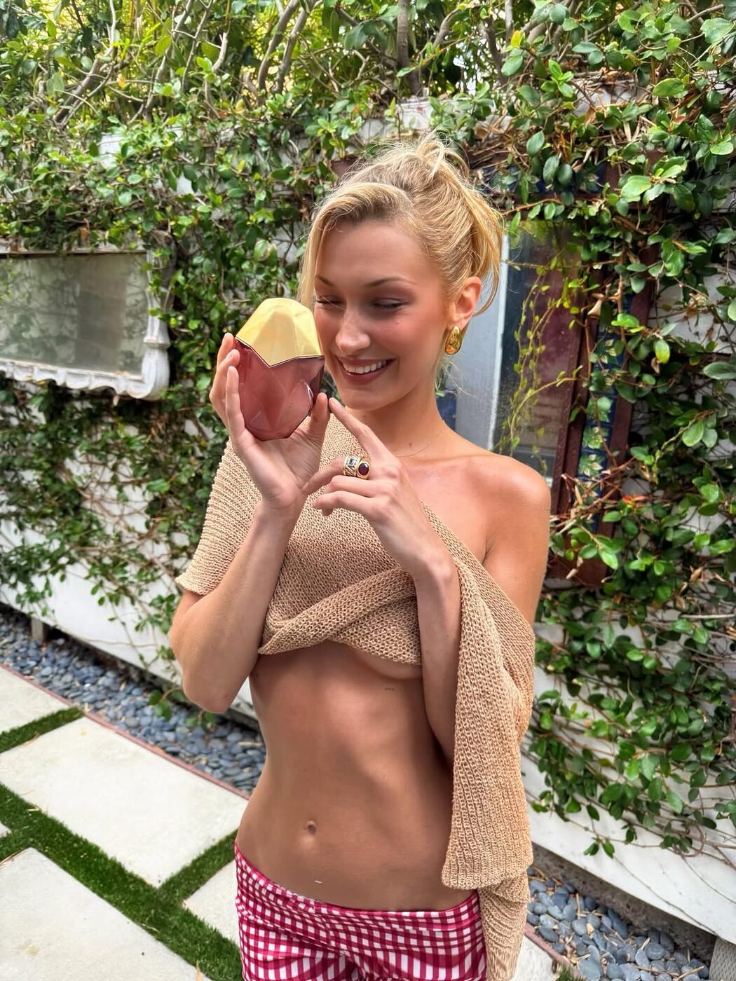 이 무드를 완성하는 데 빠질 수 없는 아이템이 바로 브론저입니다. 얼굴 윤곽을 정리하듯 헤어라인, 턱선, 광대 아래를 따라 브론저를 레이어링하면 입체적인 구조감이 살아나죠. 여기에 벨라 하디드처럼 오렌지 톤 블러셔를 자연스럽게 이어주면, 단순히 음영만 주는 것이 아니라 혈색과 생기까지 동시에 살릴 수 있어요.