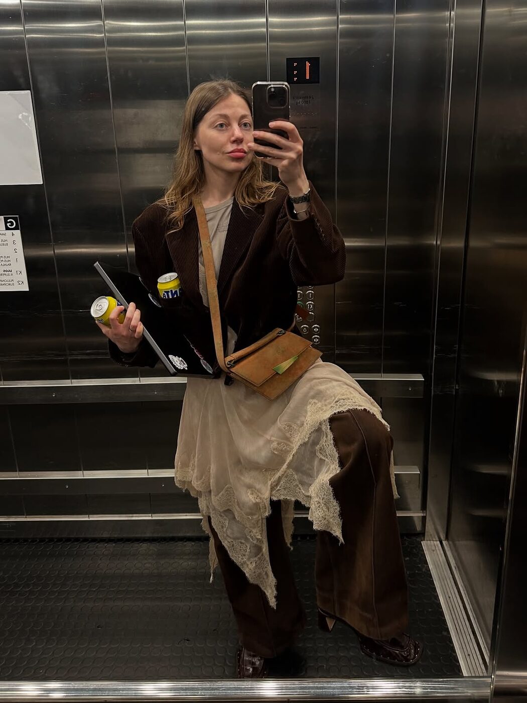 봄과 여름엔 슬립 드레스 하나로 청초한 무드를 드러냈다면, 가을에는 이질적인 소재와 스타일링해 반전을 드러낼 차례. 부드러운 레이스 트리밍의 슬립 드레스에 와이드 팬츠와 코듀로이 재킷을 매치한 룩이네요. 묵직한 소재의 가을 무드 아이템들이 가볍고 실키한 드레스에 더해져 절묘한 균형을 이뤘죠.