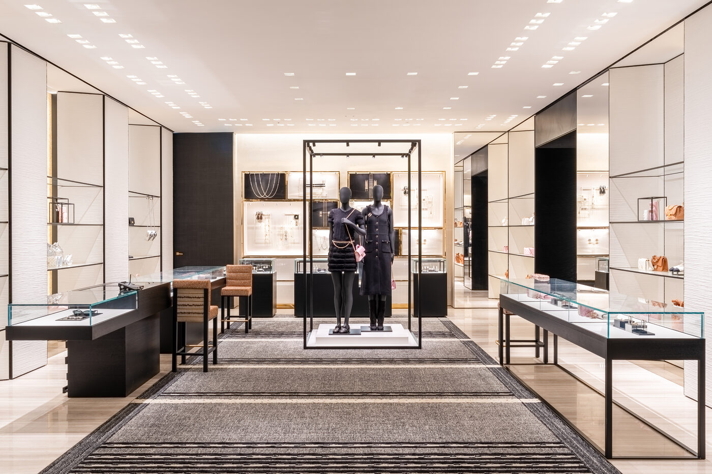 부티크 1층에 들어서자마자 보이는 것은 백. 아이코닉한 백부터 최신 샤넬 25핸드백 등 새 시즌의 제품까지 한 눈에 확인할 수 있습니다. 이 부티크에선 백, 액세서리는 물론 워치, 파인 주얼리, 슈즈, 레디 투 웨어까지 다양한 제품을 확인할 수 있습니다. 계단을 따라 올라간 2층은 워치, 파인주얼리를 시작으로 하우스의 레디 투 웨어를 직접 경험해 볼 수 있는 공간으로 이어지죠. 특히 레디 투 웨어 컬렉션이 자리한 살롱은 1990년대 로맨틱 코미디의 여주인공들의 룩에서 영감받은 25/26 FW 프리 컬렉션으로 채워져 동화적입니다.