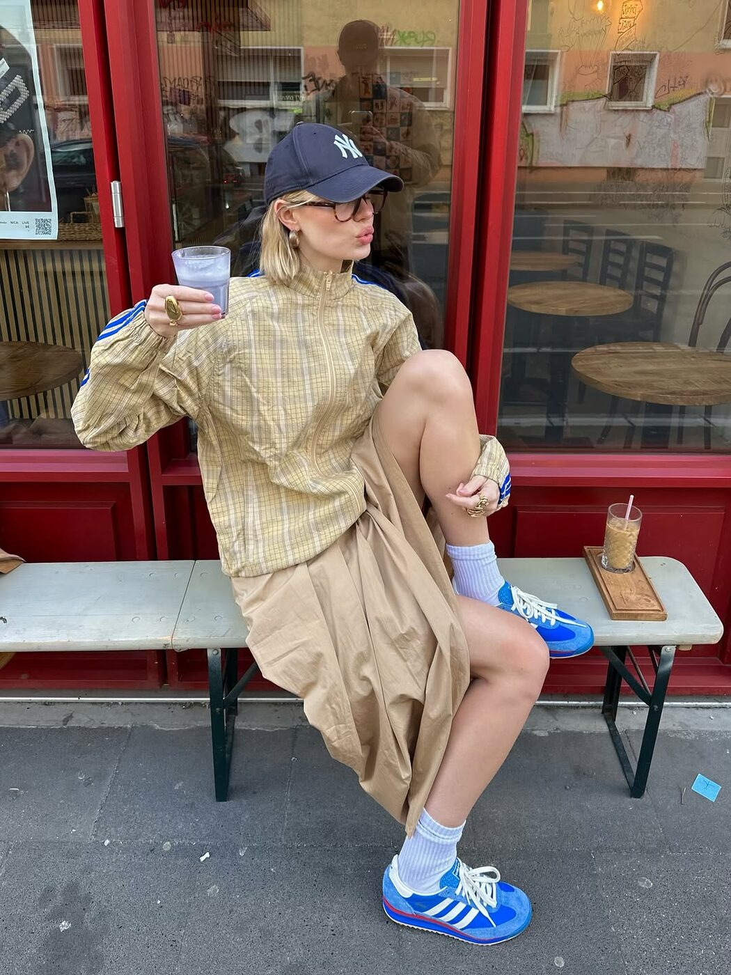 스커트 또는 원피스와 윈드브레이커의 조합은 경쾌하면서도 사랑스러운 매력을 발산합니다. 상반된 무드를 섞어낸 믹스매치 스타일이 돋보이는 룩이에요. 슬립 드레스에 블랙 팬츠를 레이어드하고 도트 패턴 윈드브레이커를 매치한 조합도 트렌디하고 귀엽죠.