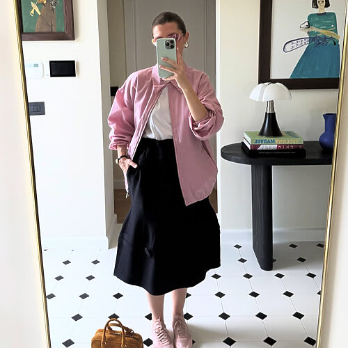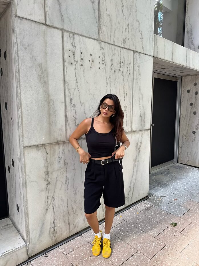 더 확실한 포인트로 룩에 유쾌함을 살리고 싶다면 비비드 컬러 하나쯤을 더해 보는 것도 좋겠습니다. 특히 양말, 스니커즈 등 환하고 밝은 색을 띠는 작은 액세서리를 매치한다면 블랙 본연의 멋스러움을 한층 강조할 수 있는 동시에 스타일 전반에 은근히 활기가 도는 기분이 들 거예요.
