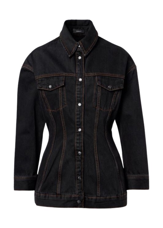 이번 시즌 가장 시크하게 해석된 레트로 감성의 데님 룩이 아닐까 싶습니다. 빈티지한 워싱 디테일의 허리 라인을 강조하는 다트가 들어간 데님 재킷은 남녀 모두가 입어도 좋을 아이템이에요. 일자 골드 버튼이 달린 재킷엔 가운데 라인이 들어간 플레어 진이 감각적인 복고 스타일링을 완성했어요.