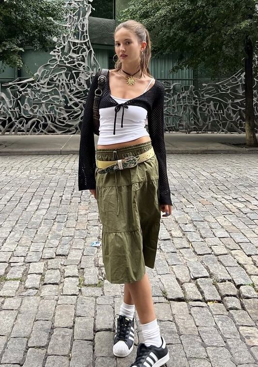 슈즈의 힘은 생각보다 더 강력합니다. 그날의 룩의 무드를 완성하는 결정적인 요소니까요. 통통한 셰잎, 동그란 앞 코 등 귀여운 요소를 모두 다 갖춘 아디다스 슈퍼스타는 전체적인 옷차림을 한껏 귀엽게 만들어줍니다. 슈퍼스타는 젠지들의 워너비로 손꼽히는 루비 린의 아웃핏에도 자주 등장하는데요. 평소 빈티지한 아이템들로 y2k 스타일링을 즐기는 그녀는 흰 양말과 함께 매치해 통통 튀는 무드를 연출합니다.