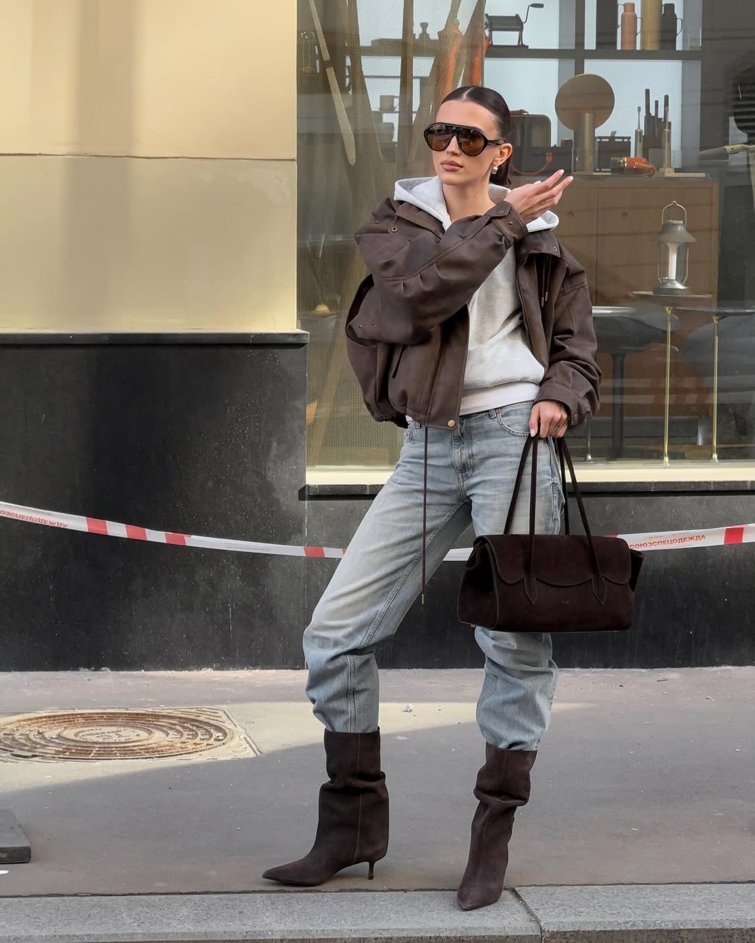 가을과 겨울의 포근한 계절감을 살리고 싶다면 스웨이드 봄버 재킷을 추천합니다. 브라운, 카멜 같은 뉴트럴 컬러를 선택하면 따뜻한 분위기가 한층 강조되죠. 파라슈트 팬츠에 슬립 드레스를 레이어드하는 믹스매치 룩에도 자연스럽게 녹아듭니다.