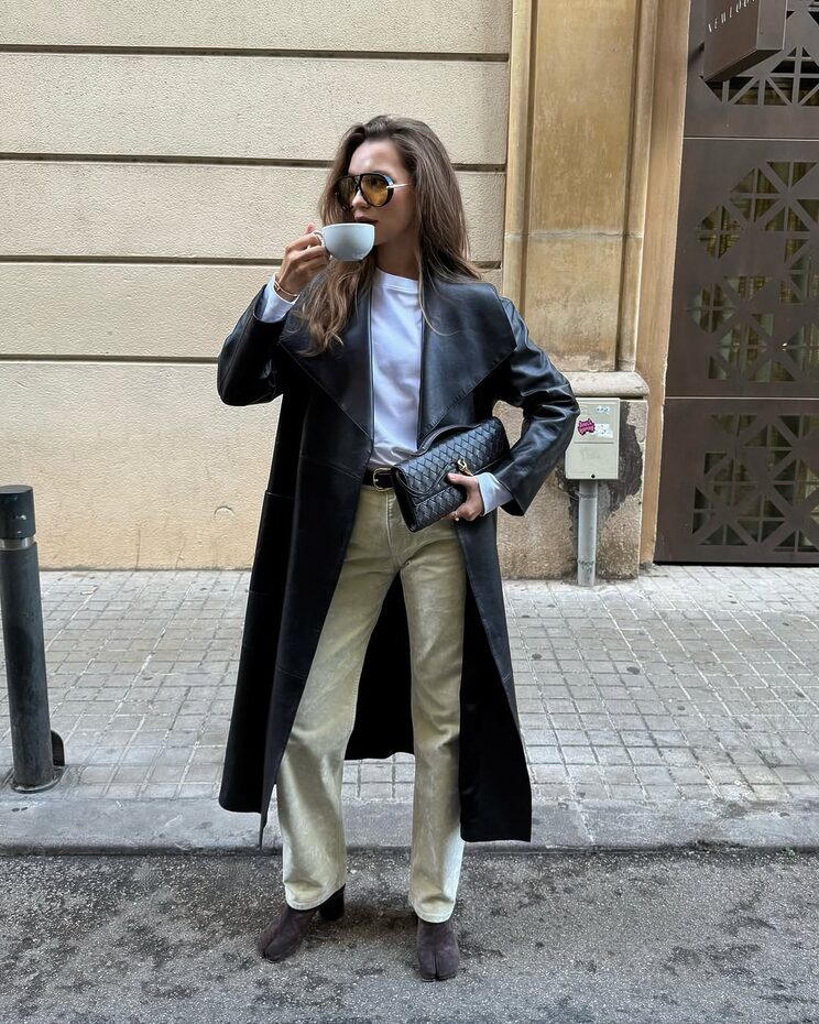 룩이 애매하다 싶을 땐 무게감 있게 툭 떨어지는 롱 레더 재킷만큼 스타일을 단숨에 잡아주는 아이템도 없습니다. 화이트 티셔츠와 바랜 듯한 크림 컬러 팬츠에 심플한 블랙 벨트를 더하고, 클러치 백으로 마무리해 보세요. 아우터가 주는 묵직한 힘이 있으니, 액세서리는 생략하거나 튀지 않는 것으로 선택하고요. 간결하면서도 멋스러운 아웃핏을 완성할 수 있을 겁니다.