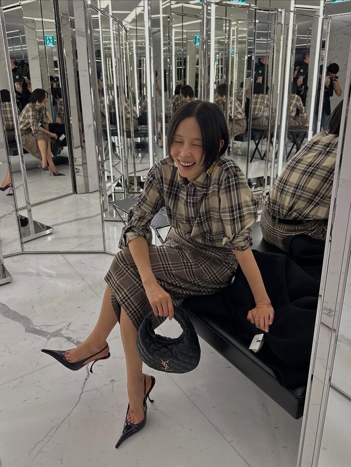 작은 호보백은 그 자체로 러블리한 매력을 지녔지만, 의외로 다양한 무드에 녹아듭니다. 모던한 무드의 체크 셔츠, 스커트로 드레스업한 김나영의 룩부터 미즈하라 키코의 슬립 드레스 룩처럼 섹시한 드레스업 스타일링에도 잘 어울리는 백이죠.