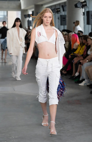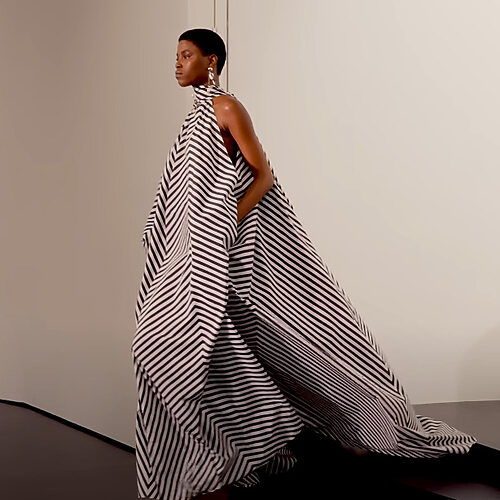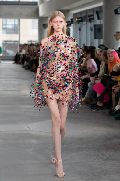 후반부로 갈수록 분위기는 더 뜨겁게 달아올랐다. 대형 메탈 스팽글이나 물결 모양의 와이어로 만든 드레스, 형형색색 크리스털 로프를 엮어 만든 드레스는 워킹할 때마다 파티 조명처럼 반짝이며 아레아의 팬들을 열광하게 했다. 아레아 제품 제작은 주로 이탈리아 밀라노에서 이루어지고 있는데, 피날레에 나온 거대한 메탈 테슬 드레스는 인도에 있는 수작업 팀에서 몇 주에 걸쳐 특별히 작업한 것이라고.