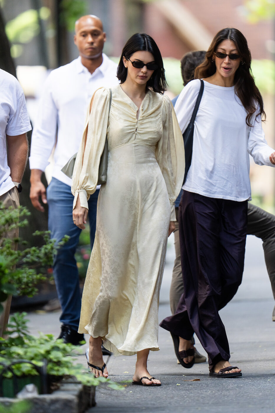 9월 12일, 소호에서 포착된 켄달 제너. 크림색 민소매 톱에 살짝 여유있는 핏의 블랙 팬츠를 매치한 그녀입니다. 여기에 톱과 같은 컬러의 가디건을 골반에 느슨하게 둘러 포인트를 줬죠. 더 로우의 플립 플롭은 그녀가 3일간 매일 신은 슈즈 입니다.