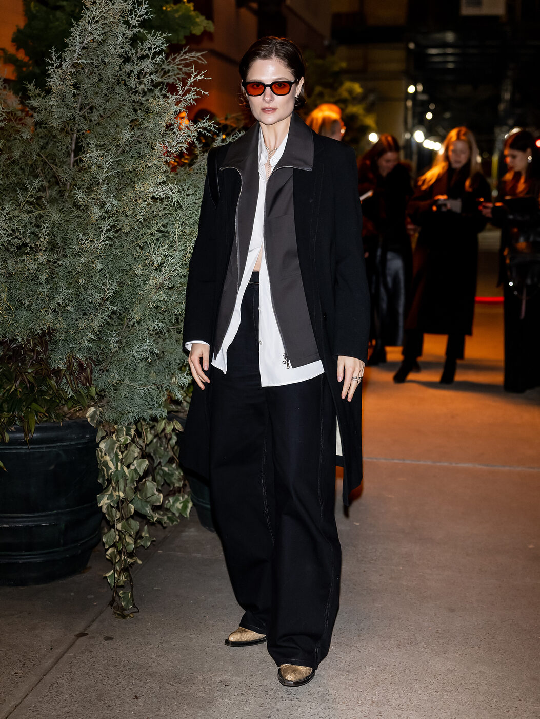 지난 2월 보여준 룩도 이번 가을 참고하기 좋죠. 루즈한 블랙 셋업을 선택했는데, 코트 안에 셔츠와 얇은 재킷을 레이어드한 센스가 돋보이는 룩입니다. 전체적으로 루즈한 핏에 셔츠 단추를 하나만 잠가 여리한 실루엣을 보여준 것 역시 조화롭고요.
