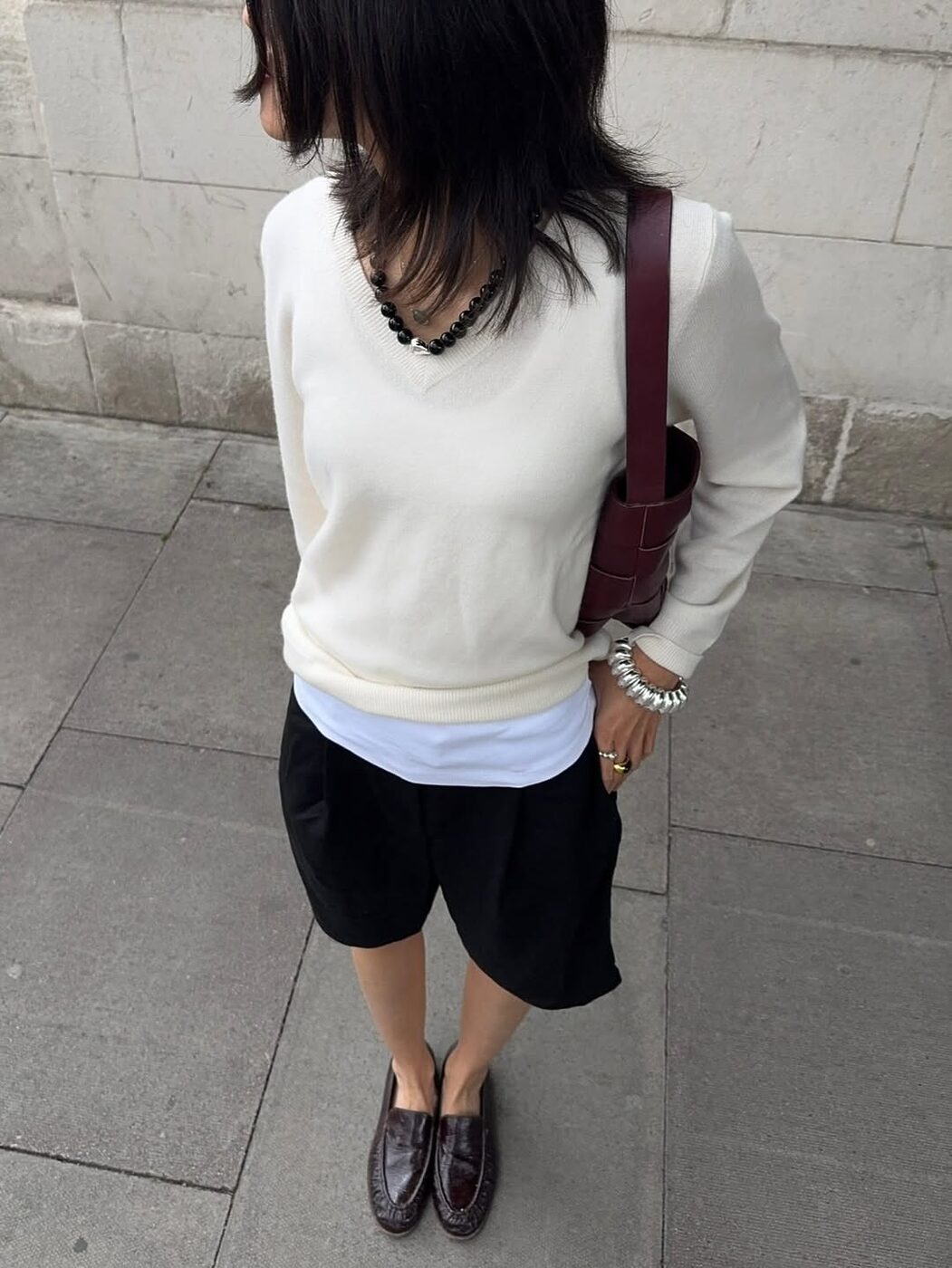 기온이 내려가는 날에는 가벼운 니트나 가디건이 제격입니다. 루즈한 니트와 버뮤다 쇼츠의 조합은 차분하면서도 세련된 분위기를 연출해 초가을 저녁에도 잘 어울립니다. 린넨이나 면 혼방처럼 통기성이 좋은 소재를 고르면 낮에도 쾌적하고, 움직임이 많은 날에도 편안하고 실용적인 선택이 됩니다.