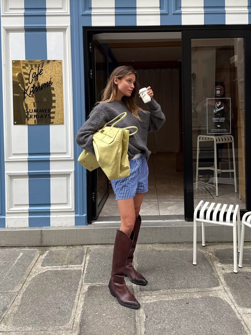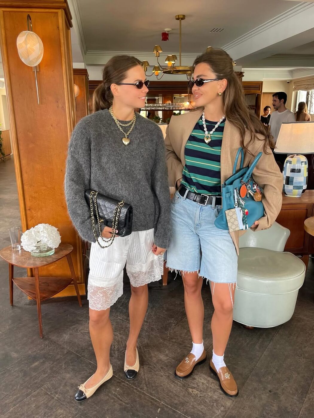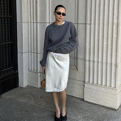 내일 당장 시도하고 싶은 매력적인 조합. 파자마 팬츠에 그레이 니트를 툭 걸쳐보세요. 이 계절에 입기 좋은 조합으로, 이왕이면 롱팬츠 보다는 쇼츠가 쿨한 룩을 완성합니다. 니트 특유의 무게감의 중화해주면서 예상 밖의 언밸런스한 매력이 살아나죠. 코튼 쇼츠와 매치하면 편안하게, 실크 레이스 팬츠와 함께라면 고급스럽게 연출할 수 있습니다.