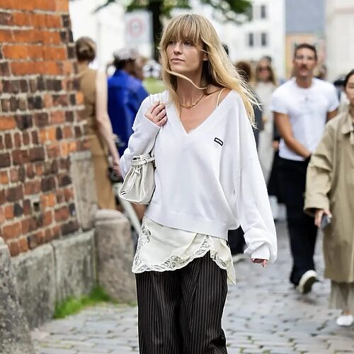 데일리 팬츠와 그레이 니트는 레이지 시크 트렌드를 가장 확실히 보여주는 공식이죠. 브이넥 디자인은 목선을 드러내 가볍고 세련된 무드를 주고, 조직감이나 패턴이 살아 있는 니트는 캐주얼한 에너지를 더해줍니다. 어떤 선택을 하든 데일리룩을 세련되게 업그레이드해주는 만능 아이템!