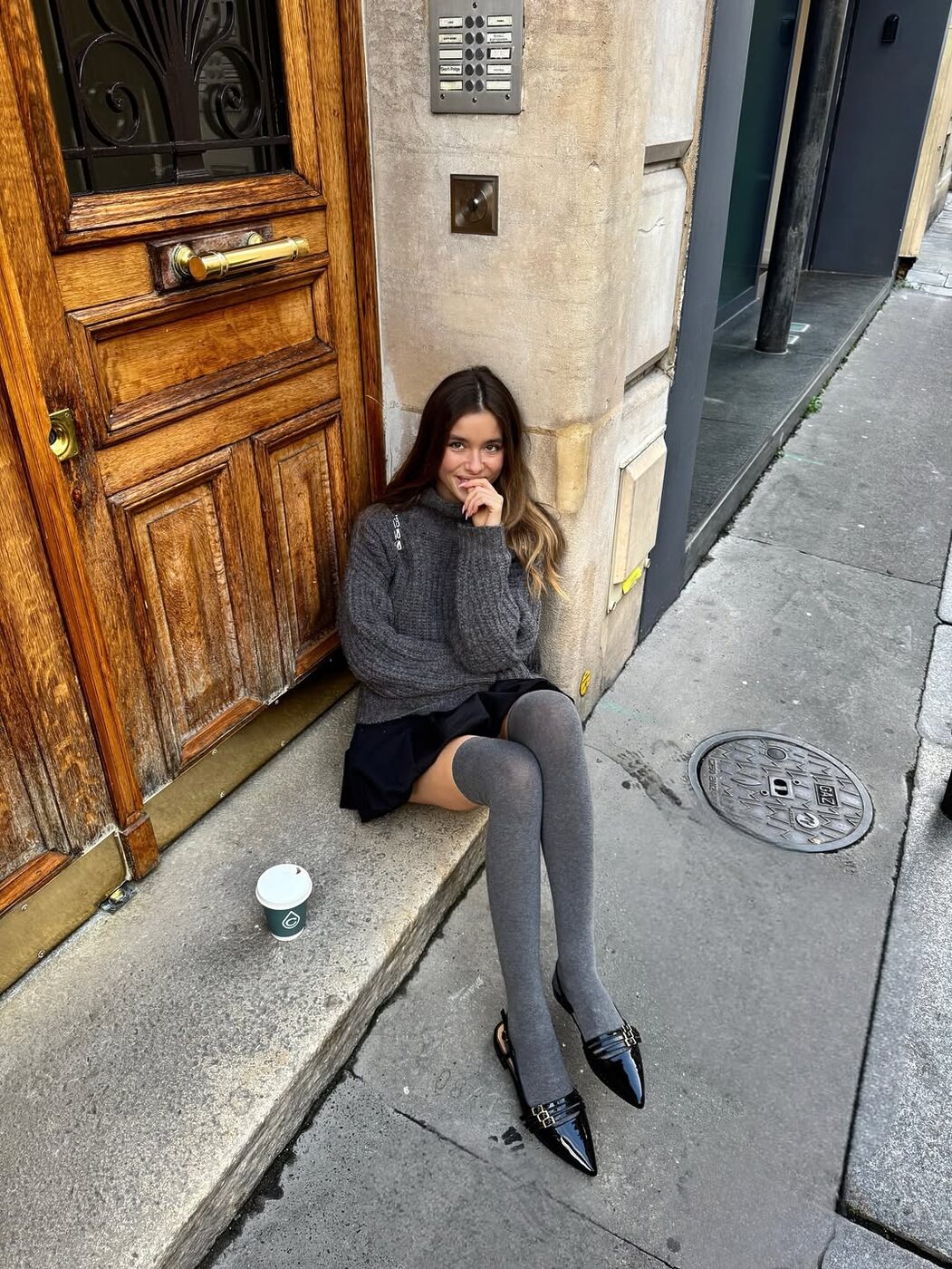니트하면 스커트도 빼놓을 수 없죠. 평범한 테니스 스커트, A라인 미니스커트와도 찰떡궁합이거든요. 스타킹과 함께 입거나, 올가을 공식처럼 자리 잡은 양말에 로퍼 조합을 곁들이면 경쾌하면서 감각적인 무드가 완성됩니다.