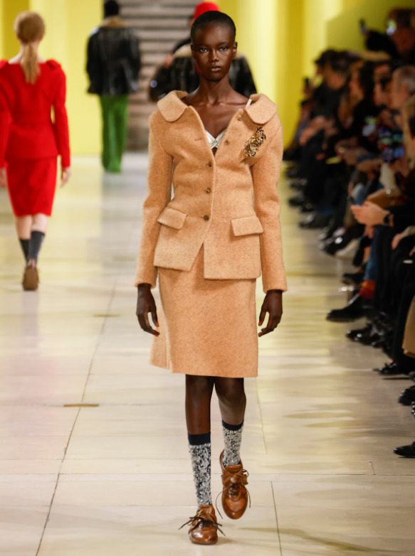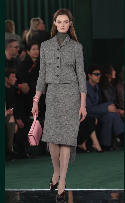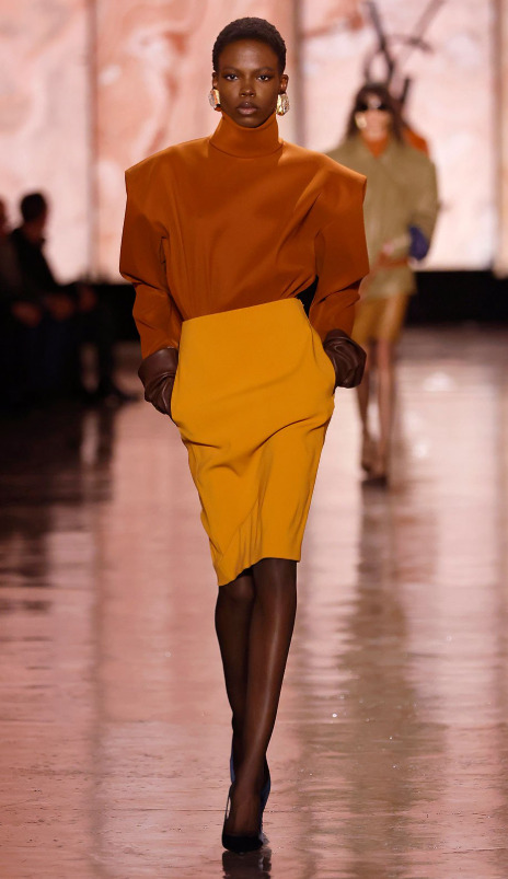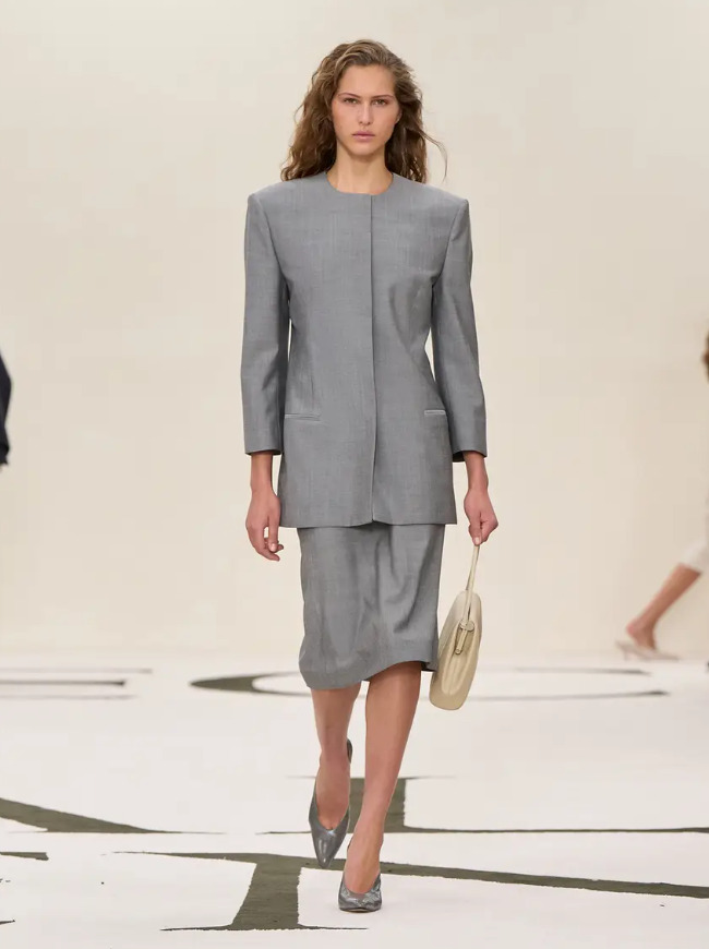 90년대 파워우먼을 떠올리게 하는 스커트 룩 또한 주목할만해요. 장식이 없는 미니멀한 라인의 그레이 재킷과 스커트 셋업을 선보인 켈빈 클라인은 그 시대로의 완벽한 회귀를 선보였죠. 생로랑은 그보다 좀 더 앞선, 80년대의 섹시하고 글래머러스한 여인상을 슬림한 라인의 펜슬 스커트로 표현했 보였습니다.