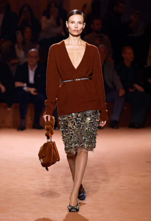패턴과 소재가 다양한 펜슬 스커트의 활용도 눈에 띕니다. 눈부신 글리터링 소재를 활용한 화려한 스타일, 실의 짜임이 돋보이는 니트 스커트, 비비드한 색감의 세련된 촌스러움이 느껴지는 패턴과 컬러의 스커트까지. 파티 걸부터 할머니가 입었던 것 같은 펜슬 스커트의 다채로운 변주도 눈 여겨 보시길.
