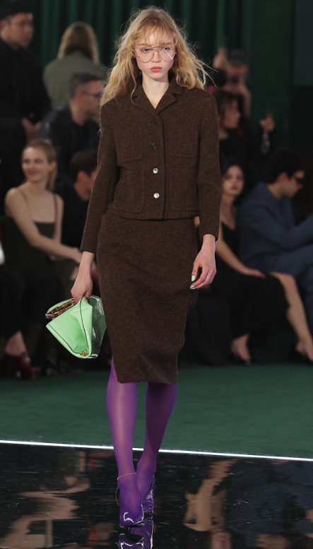 펜슬 스커트를 전통적인 스타일로 즐기고 싶다면, 셋업을 입어야 합니다. 구찌, 미우미우, 펜디 등 빅 하우스에서는 레트로 무드의 숏 재킷과 스커트로 클래식한 레이디 스타일링을 선보였죠. 울 소재의 도톰한 텍스쳐가 고급스러움을 더한 셋업 룩은 펌프스와 토트백을 매치한 전형적인 오피스 스타일 혹은 양말에 로퍼를 신은 빈티지 스타일로 연출해도 좋습니다.