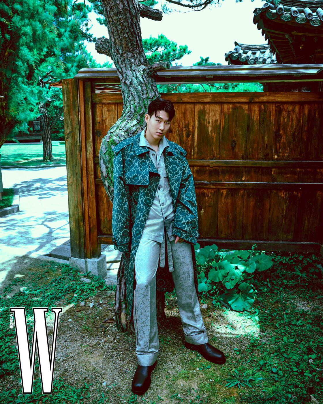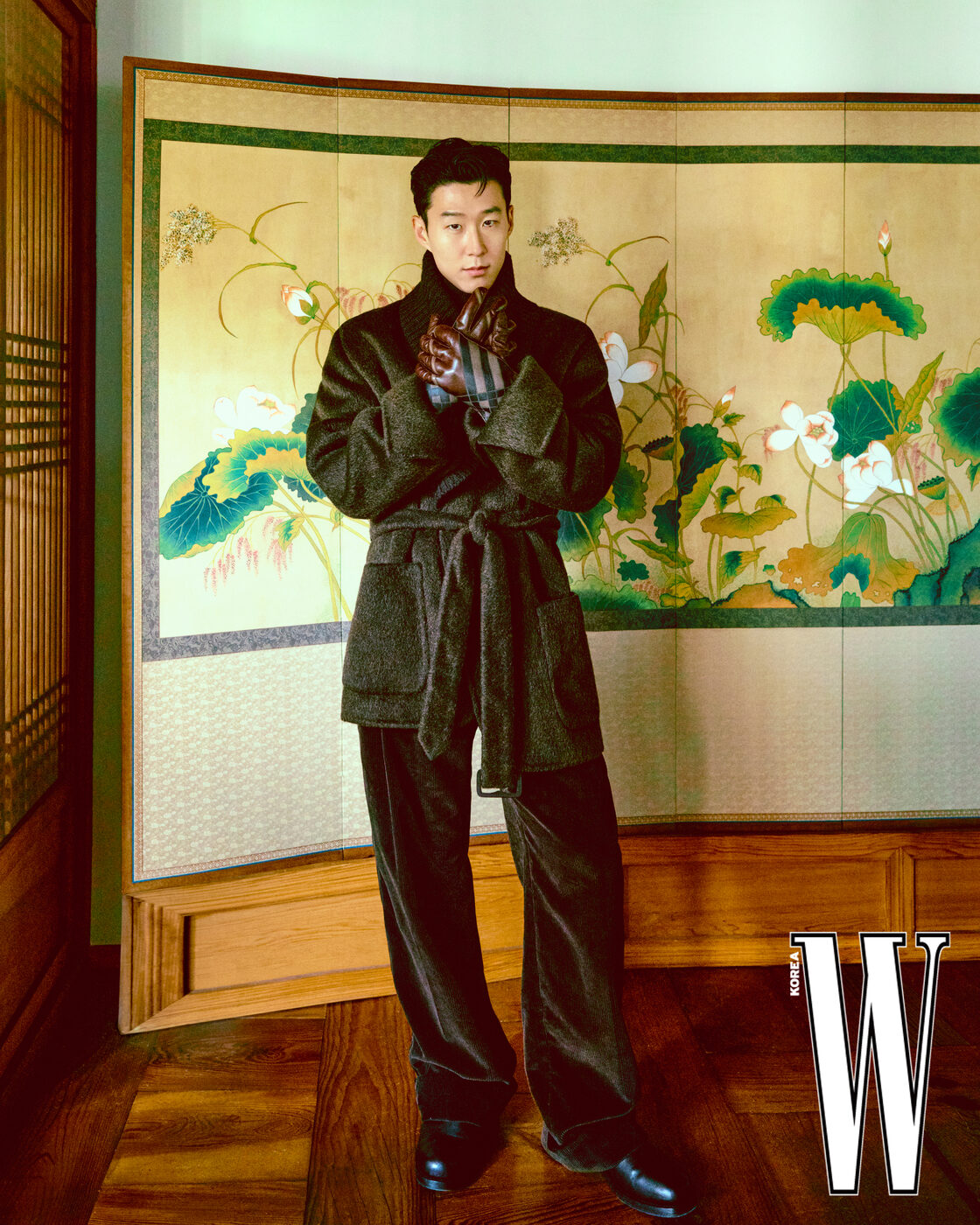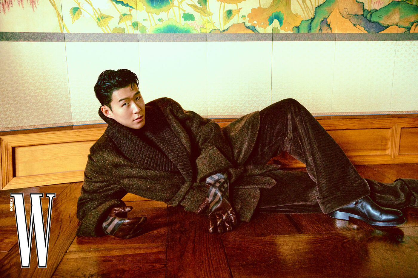 <W Korea> 지금은 LA에 계시지만, 한여름 서울의 더위 속에서 두터운 옷을 입고 <더블유> 화보 촬영을 하셨죠. 손흥민을 대한민국의 국보라고 부르잖아요. 화보 콘셉트를 잡을 때 ‘한국의 상징적인 문화를 품고 있는 한국가구 박물관에, 한국의 상징 중 하나인 손흥민이 있는 모습’을 떠올렸어요. 마음에 들었나요?