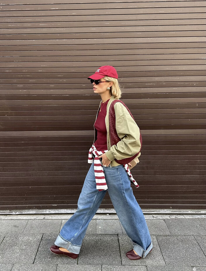 올가을 필수 아우터인 바람막이와도 훌륭한 매치를 보여주네요. 스트레이트 핏의 데님을 각각 길이가 조금씩 다르게 롤업해준건데요. 청바지의 둔탁한 무게감을 밑단에서 한번 끊어주니 상의의 어두운 톤도 덜 답답해보이지 않나요? 심지어 시원해보이기 까지 하네요. 단 이런 스트레이트 핏은 너무 많이 롤업을 하면, 다리가 짧아보일 수 있으니 위의 룩 정도의 기장 또는 복숭아 뼈가 살짝 드러나는 정도만 접어주길 권해요.